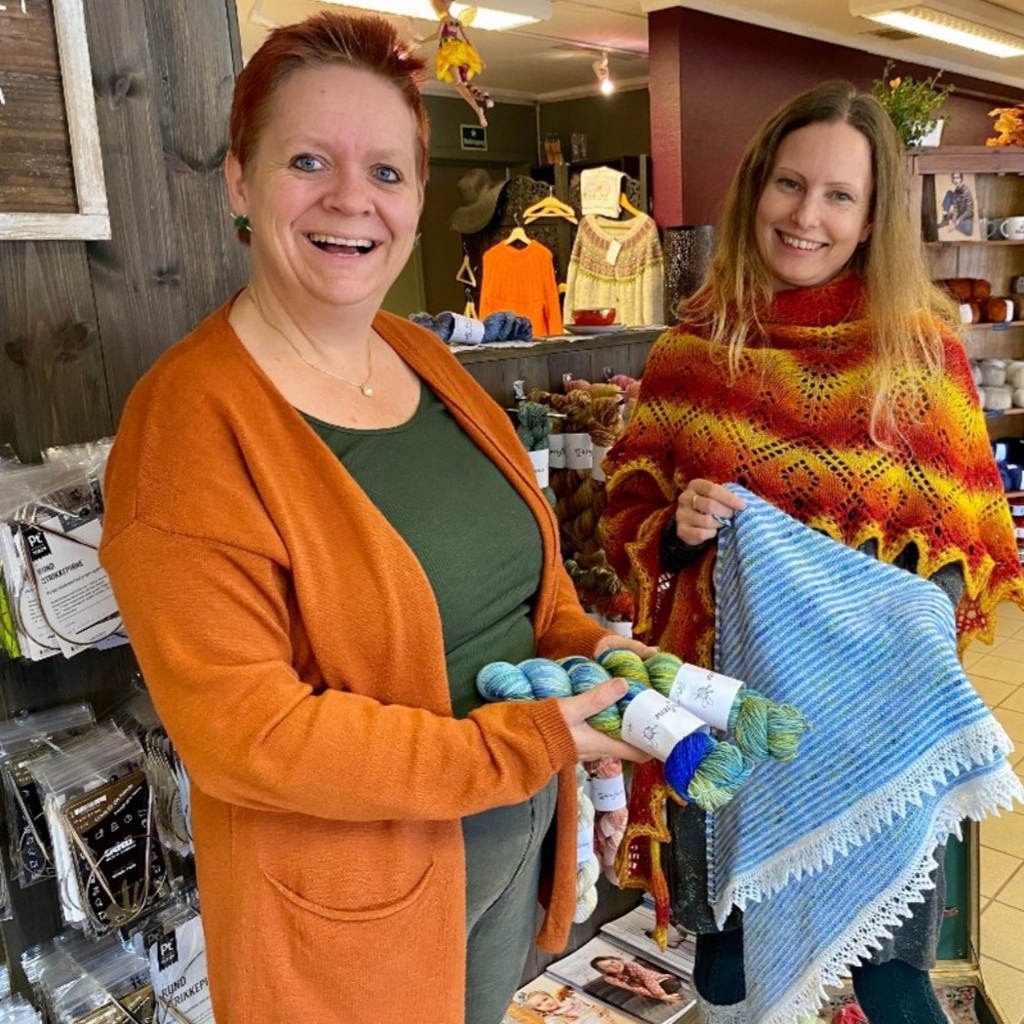Tone Johansen og Heidi Gunnæs fra bygdas garnbutikk, Garnfeen kommer.