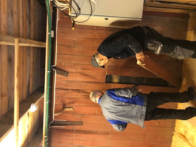 Ja, det kan en godt si. Det er gutta fra tunkomiteen som har gått løs på vegger, tak og gulv i grevlingrommet. De startet opp midt i oktober. De har revet og rettet opp, handlet og prutet, saget og snekret. Og nå begynner allerede det nye lagerrommet på 20 kvadratmeter å ta form. Det blir isolert og musefritt, lyst og praktisk med plass til fryseren og 40 hyllemeter til diverse utstyr og lagervarer. Det blir ny inngangsdør fra baksida og ny dør inn til vevsalen. Flere har vært innom og gitt en handsrekning eller et godt råd. Men i hovedsak er det Arnkjell Borg og Kristian Røed som har stått for arbeidet så langt. Skal ikke bli forundret om hele rommet er klart før jula ringes inn. – og godt er det, for da får jo nissene annet å bestille.